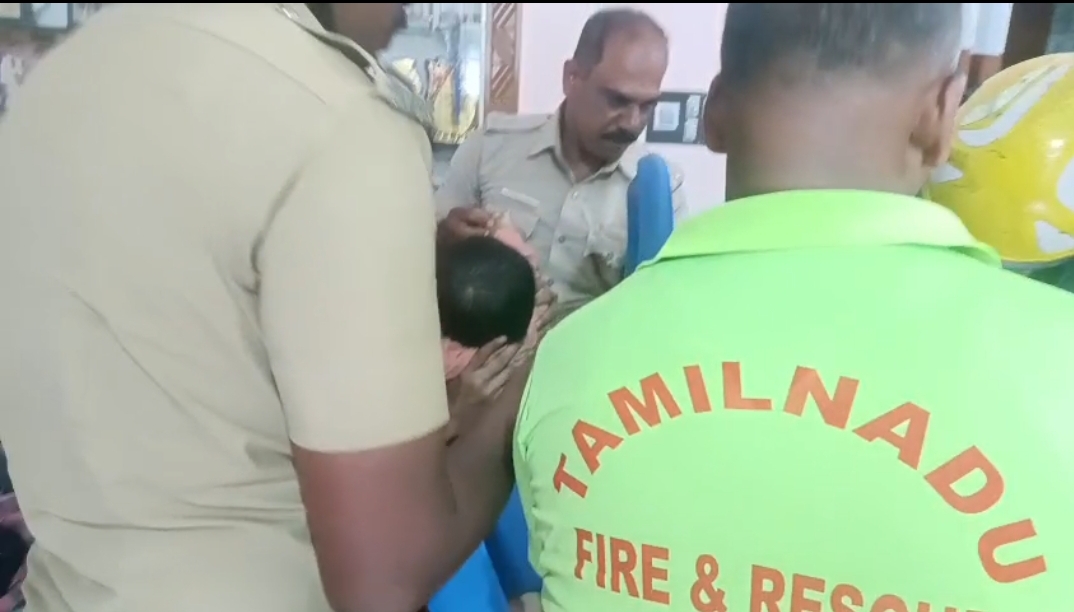 கன்னியாகுமரி மாவட்டம் தக்கலை அருகே பிளாஸ்டிக் சேரில் 15 மாத குழந்தையின் கால் சிக்கி தவிப்பு. பத்திரமாக தீயணைப்பு துறையினர் மீட்டனர்.