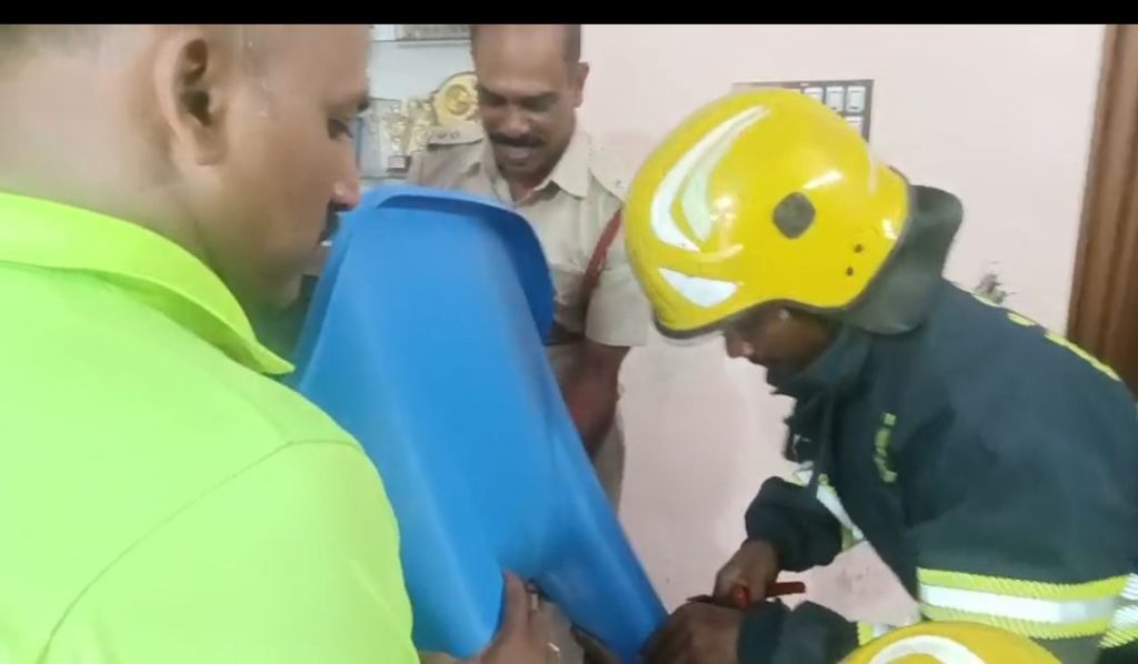 கன்னியாகுமரி மாவட்டம், அம்மாண்டிவிளை அருகே குழிக்கோடு பகுதியை சேர்ந்தவர் பிரவின். இவருக்கு கேசவ் என்ற 15 மாத ஆண் குழந்தை உள்ளது. குழந்தை கேசவ் வீட்டில் உள்ள பிளாஸ்டிக் சேரில் உட்கார்ந்து விளையாடிக் கொண்டிருந்தான். தாயார் வீட்டில் சமையல் வேலையில் ஈடுபட்டுக் கொண்டிருந்தார். அப்போது எதிர்பாராத விதமாக குழந்தையின் கால், பிளாஸ்டிக் சேரின் குழாய் வடிவிலான காலின் துவாரத்தில் சிக்கியது. சமையல் செய்து கொண்டிருந்த தாய், சத்தம் கேட்டு ஓடி வந்து மீட்க முயன்றும் முடியவில்லை. இது குறித்து தீயணைப்பு துரையினருக்கு தகவல் கொடுத்தனர். தகவலின்படி, தக்கலை தீயணைப்பு நிலைய அலுவலர் ஜீவன்ஸ் தலமையிலான துறை வீரர்கள் விரைந்து வந்து நாற்காலியின் அடிப்பகுதியை உடைத்து குழந்தையை பத்திரமாக மீட்டனர்.