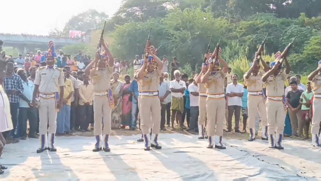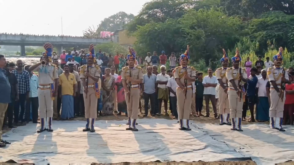 இது தொடர்பாக துணை ராணுவ டிஎஸ்பி நித்தியானந்தன், மற்றும் இன்ஸ்பெக்டர் ராமுலோ தலைமையில் 16 ராணுவ 77 பட்டாலியன் SRPF சேர்ந்தவர்கள் இறுதி சடங்கின் போது இறந்த துணை ராணுவ வீரரான அதியமான் உடலுக்கு தேசிய கொடி போர்தி மலர் வளையம் வைத்து அஞ்சலி செலுத்தி 21 குண்டு முழங்க மரியாதை செலுத்தினர் அதன் பின்னர் மேட்டுப்பாளையம் பாலாற்றங்கரையில் அவரது உடல் கேட்டு எரிக்கப்பட்டது..