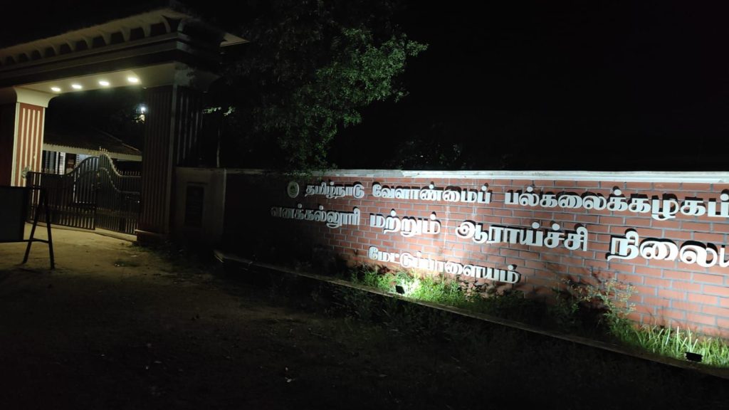 இந்த நிலையில் நேற்று இரவு வனப்பகுதியில் இருந்து வெளியே வந்த காட்டு யானை பாகுபலி மேட்டுப்பாளையம் கோத்தகிரி சாலையில் உள்ள வனக்கல்லூரி வளாகத்துக்குள் நுழைந்தது