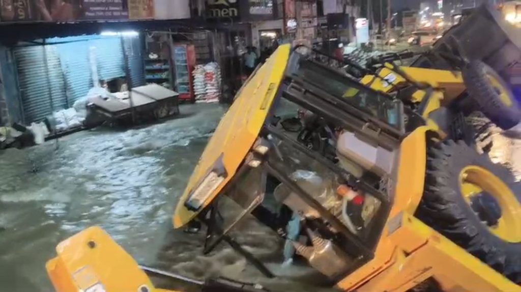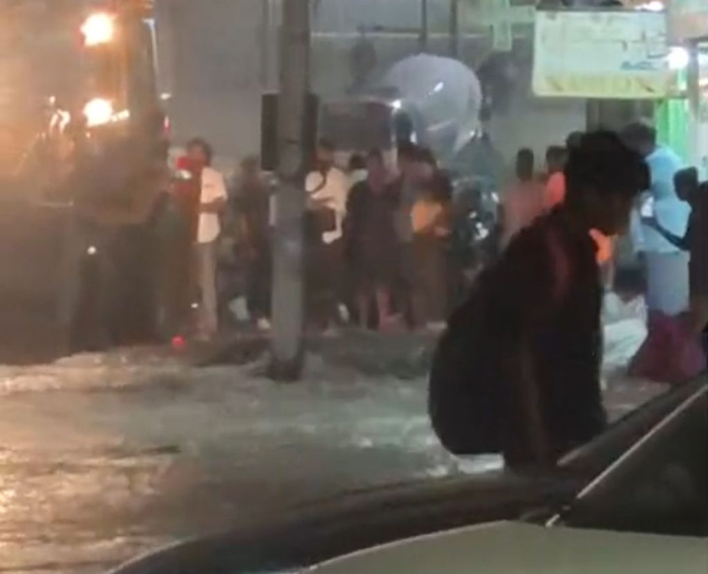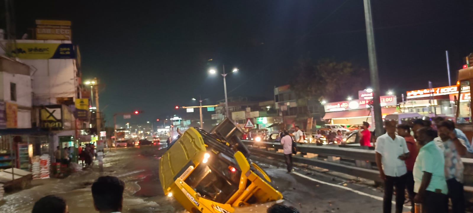 கோவை சக்தி சாலையில் சரவணம்பட்டி சந்திப்பில் ராட்சத பாதாள குடிநீர் குழாய் உடைந்து பல லட்சம் லிட்டர் குடிநீர் வீணாகி சாலைகளில் வெள்ளம் பெருக்கெடுத்து ஓடியது
