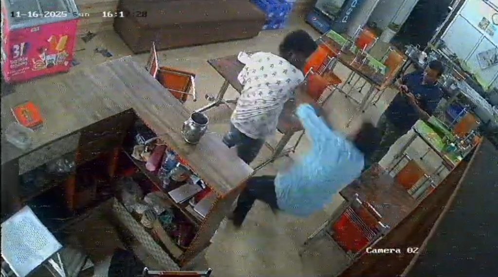 திருப்பூர் வீரபாண்டி காவல் நிலையம் அருகே உள்ள பெப்சி என்ற உணவகத்தில் இன்று மாலை அதே பகுதியைச் சேர்ந்த கௌதம் என்பவர் உணவருந்த சென்றுள்ளார். அங்கு ப்ரைட் ரைஸ் ஆர்டர் செய்து காத்திருந்த நிலையில் தனக்கு பிறகு வந்தவர்களுக்கு உணவு வழங்கப்பட்டதாகவும் தனக்கு உணவு வழங்கவில்லை என கௌதம் உணவகத்தில் இருந்த ஊழியர்களுடன் வாக்குவாதத்தில் ஈடுபட்டார். இதனால் ஆத்திரமடைந்த கௌதம் தனது நண்பர்களை செல்போன் மூலமாக அழைத்தார் உடனடியாக ஆறு பேர் அங்கு வந்த நிலையில்  உணவகத்தின் கண்ணாடிகளை  உடைத்த கௌதம் உணவக மாஸ்டர், மற்றும் காசாளரை தாக்கினார்.