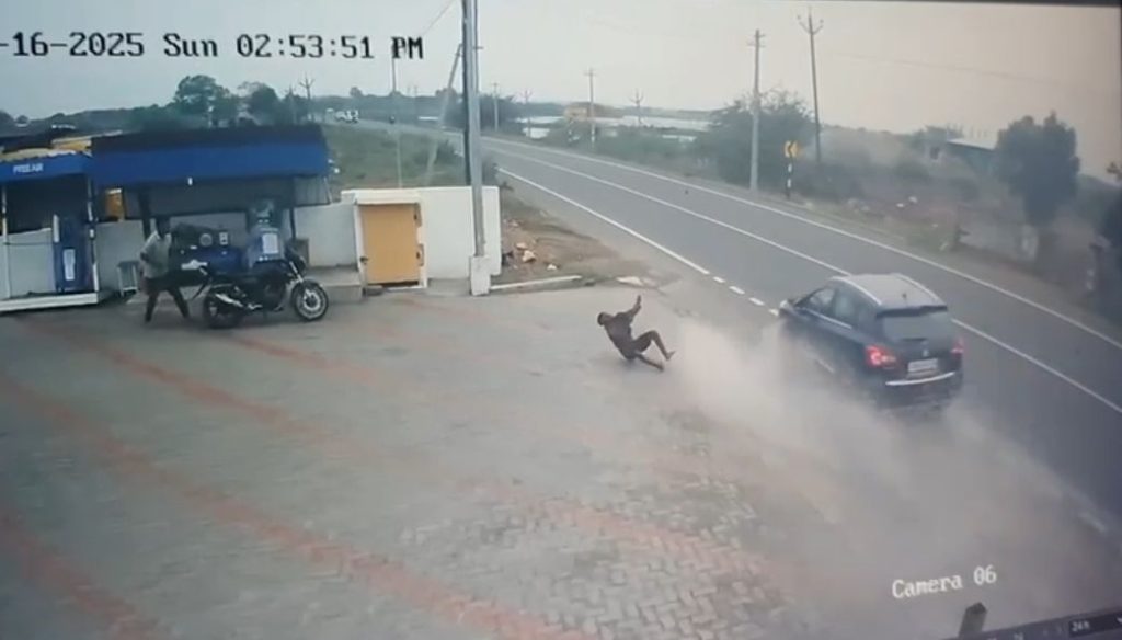 நாகப்பட்டினம் மாவட்டம் பாப்பாகோவில் சமத்துவபுரத்தை சேர்ந்தவர் 30 வயதான மணிகண்டன் ஆட்டோ ஓட்டுனரான இவர் தனது இருசக்கர வாகனத்திற்கு பெட்ரோல் போட கருவேலங்கடை பெட்ரோல் பங்க் திரும்பியபோது வேளாங்கண்ணியில் இருந்து நாகப்பட்டினம் நோக்கி சென்ற கார் இவர் மீது பயங்கரமாக மோதியது இதில் 100 மீட்டர் தூரத்திற்கு தூக்கி வீசப்பட்ட மணிகண்டன் சம்பவ இடத்திலேயே பலியானார் தகவல் அறிந்து வந்த வேளாங்கண்ணி போலீசார் உடலை கைப்பற்றி ஒரத்தூர் மருத்துவக் கல்லூரி மருத்துவமனைக்கு அனுப்பி வைத்தனர் விபத்து ஏற்படுத்திய காரை பறிமுதல் செய்த வேளாங்கண்ணி போலீசார் இது குறித்து வழக்கு பதிவு செய்து விசாரணை மேற்கொண்டு வருகின்றனர் இறந்தவர் உடலை கண்டு உறவினர்கள் கதறி அழுத சம்பவம் அப்பகுதியில் பெரும் சோகத்தை ஏற்படுத்தியது மேலும் இருசக்கர வாகனம் மீது கார் மோதி மணிகண்டன் தூக்கி வீசப்படும் பரபரப்பு சிசிடிவி காட்சிகள் வெளியாகி அதிர்ச்சியை ஏற்படுத்தி உள்ளது