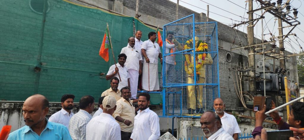 திருக்கோவிலூரில் சட்டமேதை அம்பேத்கர் அவர்களின் நினைவு தினத்தை ஒட்டி பாரதிய ஜனதா கட்சியினன் சார்பாக மாலை அணிவித்து வீரவணக்கம் செலுத்தினர்
