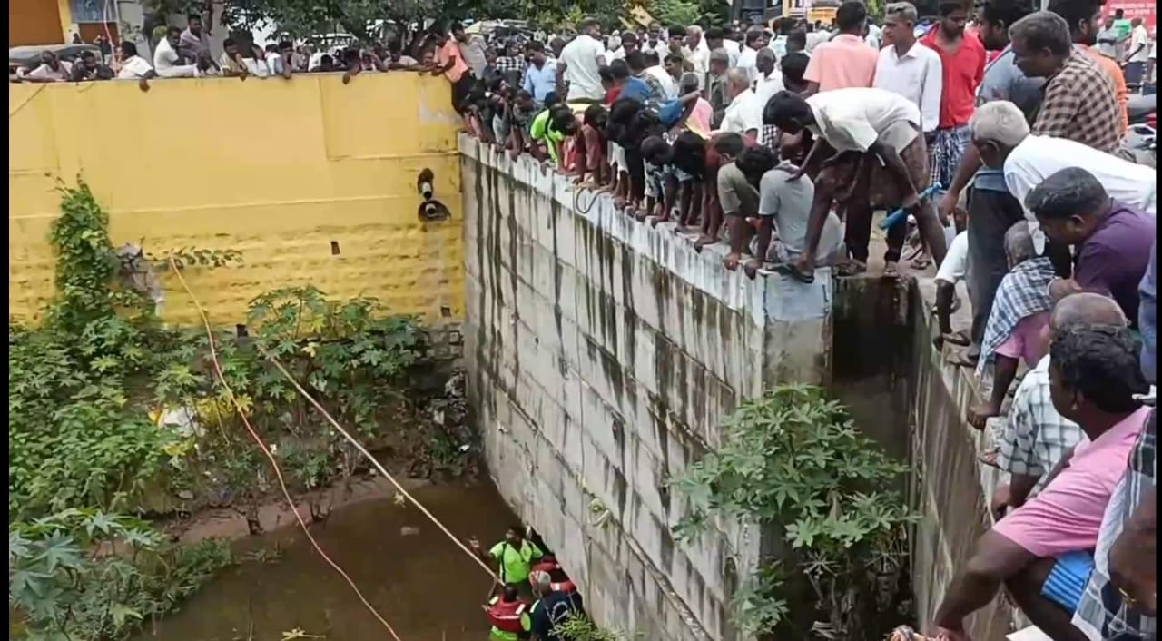 பொக்லைன் இயந்திரம் மூலம் அவரை மீட்க முயற்சி செய்த போதும் தண்ணீருக்குள் ஆழமாக சென்றதால் அவரை மீட்க முடியவில்லை.