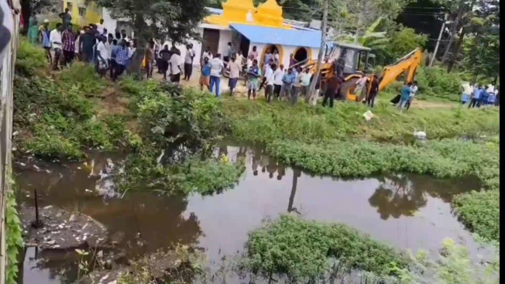 சுமார் ஆறு மணி நேரமாக அவரை மீட்கும்முயற்சி தோல்வி அடைந்ததை அடுத்து தீயணைப்பு துறையினர் அங்கு வந்து அவரை மீட்கும் முயற்சியில் ஈடுபட்டு நீண்ட தேடுதலுக்கு பின்னர் ஜெயக்குமாரின் உடலை மீட்டனர் பாலாற்றிலிருந்து ஏரிக்கு செல்லும் நீரை குறைக்க மணல் மூட்டைகள் அடுக்கி அடைக்கும் பணியை செய்ய முயன்றவர் பலியான சம்பவம் சோகத்தை ஏற்படுத்தியுள்ளது