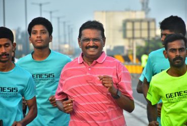 10.1 கிலோமீட்டர் நீளமுள்ள அவிநாசி சாலை ஜி.டி.நாயுடு மேம்பாலத்தை தடகள விளையாட்டு வீரர்களுடன் ஓடி கடந்த முன்னாள் எம்எல்ஏ நா.கார்த்திக்