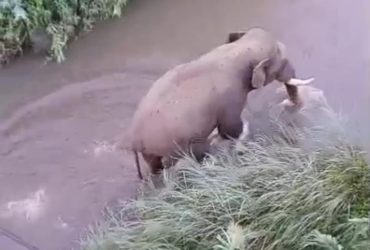 கொம்பன் யானை நொய்யல் ஆற்றை கடந்து செல்லும் செல்போன் வீடியோ காட்சிகள் – சமூக வலைதளங்களில் வைரல் !!!