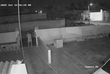 கரூர் அருகே இரவு நேரத்தில் முகமூடிக் கொள்ளையர்கள் இருவர் கையில் கடப்பாரையுடன் நடமாடும் சிசிடிவி காட்சி