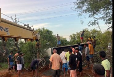 கரூர் அருகே சாலை விபத்தில் 3 வட மாநில தொழிலாளர்கள் மினி லாரி கவிழ்ந்து உயிரிழப்பு.
