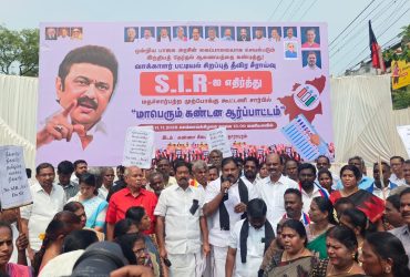 தாராபுரத்தில் திமுக தலைமையிலான மதச்சார்பற்ற முற்போக்குக் கூட்டணி சார்பில் கண்டன ஆர்ப்பாட்டம் — 700-க்கும் மேற்பட்டோர் பங்கேற்பு