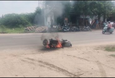 விருதுநகர் சாலையில் ஓடிக் கொண்டிருந்த எலக்ட்ரிக் பைக் திடீரென தீப்பிடித்து எரிந்ததால் பரபரப்பு….!