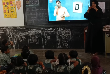 திருப்பூர் அரசு தொடக்கப் பள்ளி மாணவர்களுக்கு வீடியோ காட்சி மூலம் சைகை மொழி கற்பிப்பு