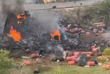 அரியலூர் – சிலிண்டர் ஏற்றி வந்த லாரி விபத்தில் லாரியில் இருந்த சிலிண்டர்கள் வெடித்தது – லாரி ஓட்டுநர் தீக்காயங்களுடன் மருத்துவமனையில் அனுமதி
