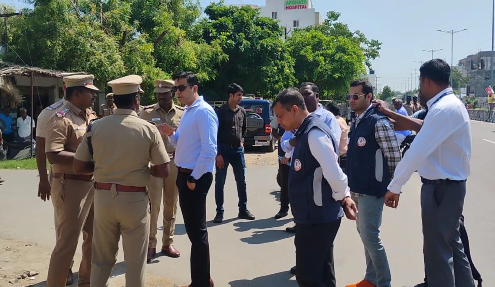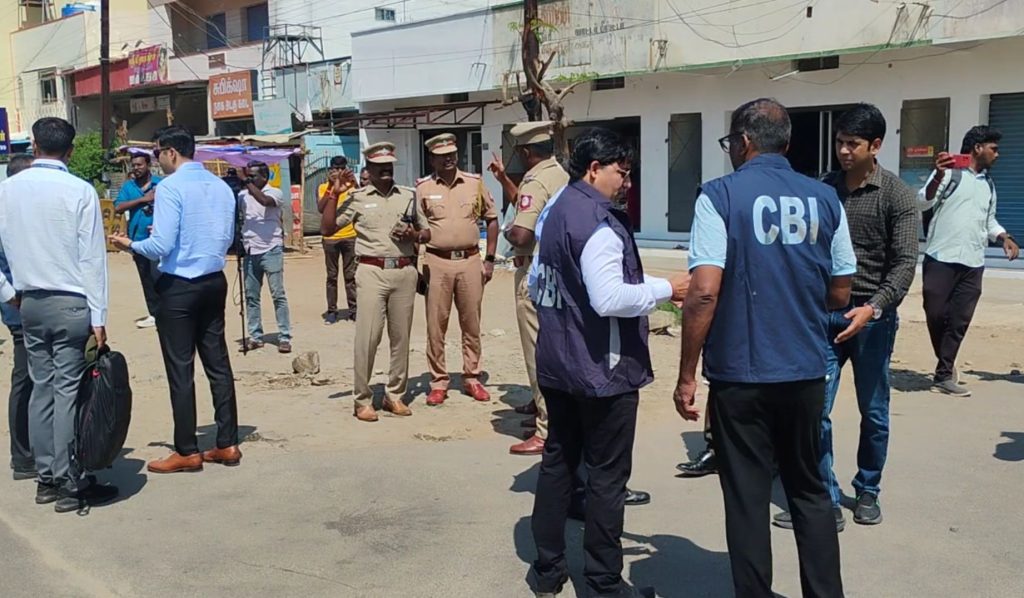 கரூர், வேலுச்சாமிபுரம் சம்பவ இடத்தை முதன்முறையாக ஆய்வு செய்யும் சிபிஐ அதிகாரிகள். – 3டி லேசர் ஸ்கேனர் அளவீட்டு கருவி உதவியுடன் 12 பேர் கொண்ட சிபிஐ அதிகாரிகள் குழு விசாரணையை தொடங்கியது.
