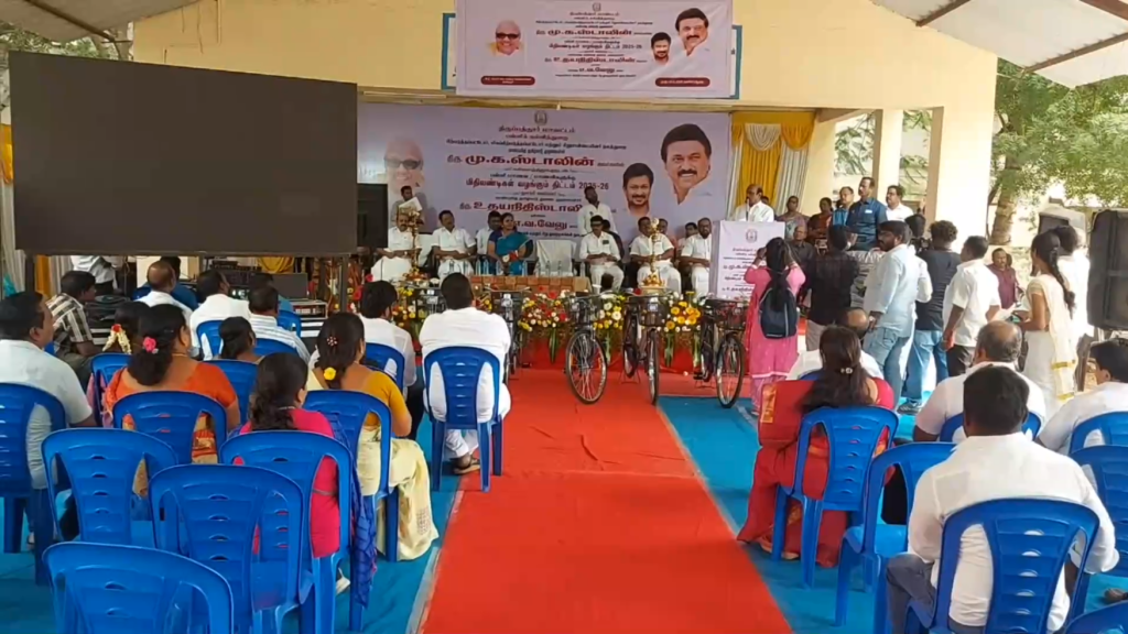 மிதிவண்டி வழங்க வந்த நிகழ்ச்சியில் மாவட்ட ஆட்சியரிடம் மேடம் உங்க சீட்டை தொட்டு பார்க்கட்டுமா என்று கேட்ட அரசு பள்ளி மாணவிக்கு தன்னுடைய சீட்டை கொடுத்து அமர செய்து ஊக்கம் அளித்து உற்சாகப்படுத்திய மாவட்ட ஆட்சியர்