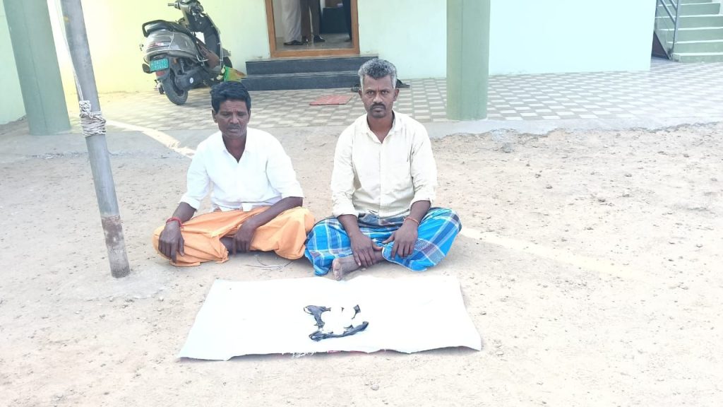 தருமபுரி மாவட்டம் பாலக்கோடு அருகே அந்தேரிகாடு கிராமத்தை சேர்ந்தவர் சேட்டு (வயது 45) இவரின் நண்பர் வாக்கன்கொட்டாயை கிராமத்தை சேர்ந்த மாது (வயது45) ஆகிய இருவரும் சேர்ந்து நேற்று முன்தினம் மாலை எலுமிச்சனஅள்ளி அருகில் உள்ள வனப்பகுதியில் 10 அவிட்டுகாய் எனப்படும் நாட்டுவெடிகுண்டுகளை கொண்டு வனவிலங்குகளை வேட்டையாட ஆங்காங்கே மண்ணில் புதைத்து விட்டு சென்றுள்ளனர்.
