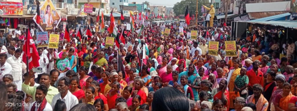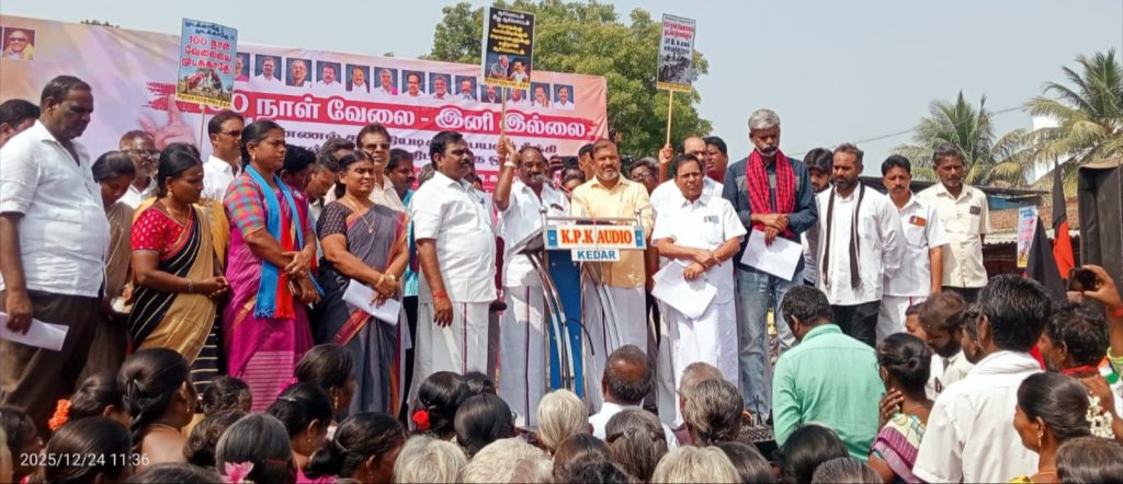 மகாத்மா காந்தி தேசிய ஊரக வேலை உறுதி திட்டமான (100 நாள் வேலைத்திட்டம்) பெயர் மாற்றம் செய்தும் வழங்கப்பட்ட ஊதியத்தை குறைத்தும் மாநில அரசின் மீது நிதிச்சுமையை அதிகரித்தும் கிராமப் புற மக்களின் வாழ்வாதாரத்தை சீர்குலைத்த, இந்திய ஒன்றிய பாசிச பாஜக அரசை கண்டித்து விழுப்புரம் தெற்கு மாவட்ட திமுக மற்றும் மதசார்பற்ற முற்போக்கு கூட்டணி கட்சிகளின் சார்பில் விக்கிரவாண்டி சட்டமன்றத் தொகுதி காணை தெற்கு வடக்கு மத்திய ஒன்றியத்தை உள்ளடக்கி மாபெரும் கண்டன ஆர்ப்பாட்டம் கெடார் ஊராட்சியில் உள்ள யூனியன் வங்கி எதிரே மாவட்ட ஊராட்சிக் குழு தலைவர் ஜெயச்சந்திரன் தலைமையில் கண்டன ஆர்ப்பாட்டம் நடைபெற்றது.