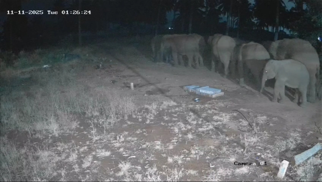 இந்நிலையில் நேற்று இரவு வனப்பகுதியில் இருந்து வெளியேறிய 12 யானைகள் கொண்ட கூட்டம்  தடாகம் அடுத்த வரப்பாளையம் பகுதியில் சுற்றி வந்தது, பின்னர் அங்குள்ள மனோகர் என்பவரது  தோட்டத்திற்குள் புகுந்த யானைகள் அங்கிருந்த வாழை உள்ளிட்ட விவசாய பயிர்களை சேதப்படுத்தியது, முன்னதாக அந்த யானை கூட்டம் மனோகர் தோட்டத்திற்குள் வரும் சிசிடிவி காட்சிகள் தற்போது வெளியாகி உள்ளது அதில் பெரிய யானை மற்றும் குட்டி யானைகள் என 12 யானைகள் உள்ளே வருவதும் அதில் இரு ஆண் யானைகள் விளையாட்டாக சண்டை போட்டுக் கொண்டு இருப்பதும்  அங்குள்ள சிசிடிவி கேமராவில் பதிவாகியுள்ளது.