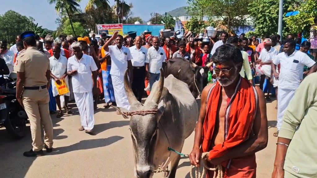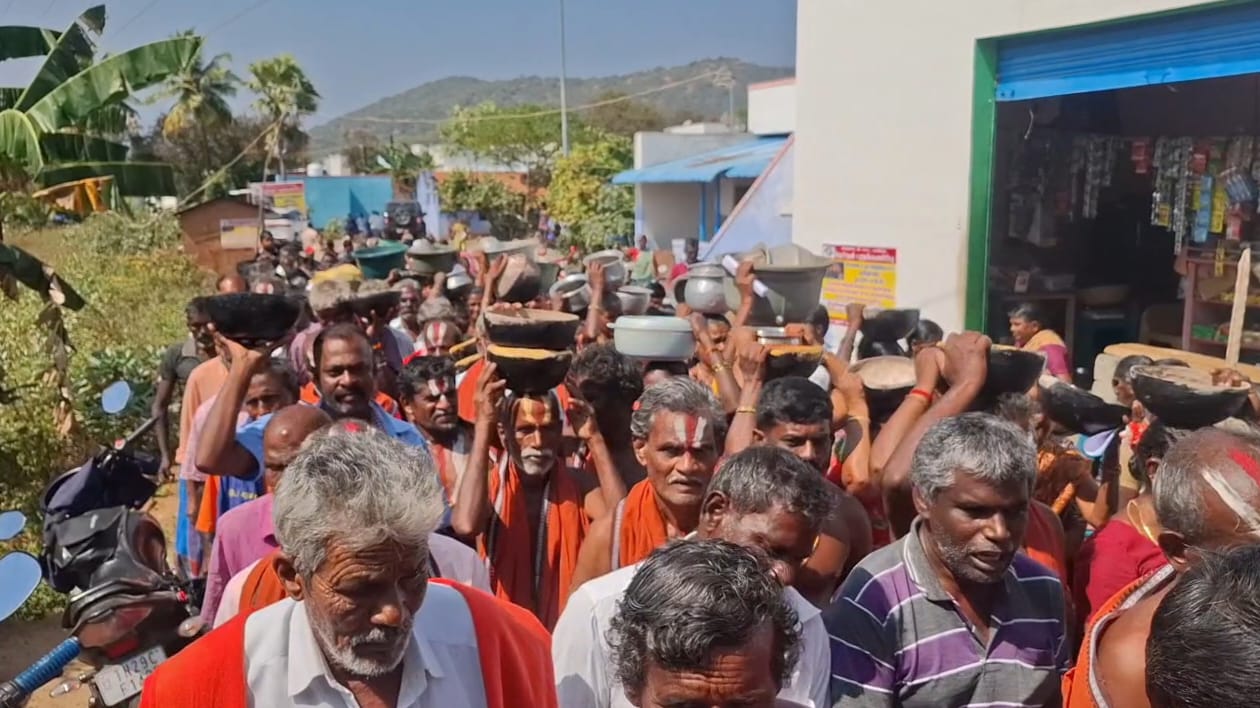 திருவோடு ஏந்திய ஊர்வலமாக சென்று வனப்பகுதியில் குடியேறி காத்திருப்பு போராட்டத்தைத் தொடங்கினர்.