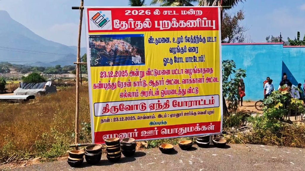 ஏமனூர் கிராம மக்கள் காத்திருப்பு போராட்டம்-கிராம மக்கள் 2026 தேர்தலை புறக்கணிக்க அறிவிப்பு
