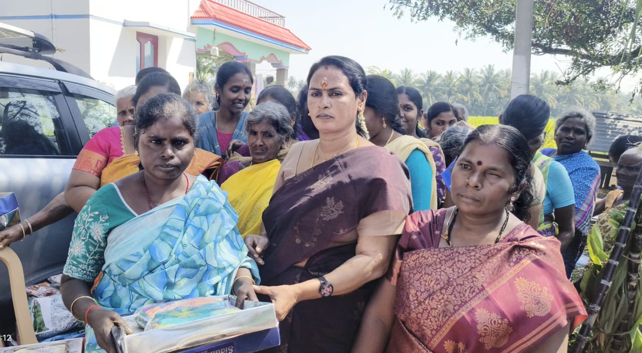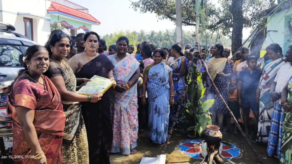 கி. காயத்ரி  தலைமையில், G VISION CHARITABLE TRUST சார்பில் அங்குள்ள அனைத்து பெண்களுக்கும் பொங்கல் பரிசாக புத்தாடைகள் வழங்கப்பட்டன.