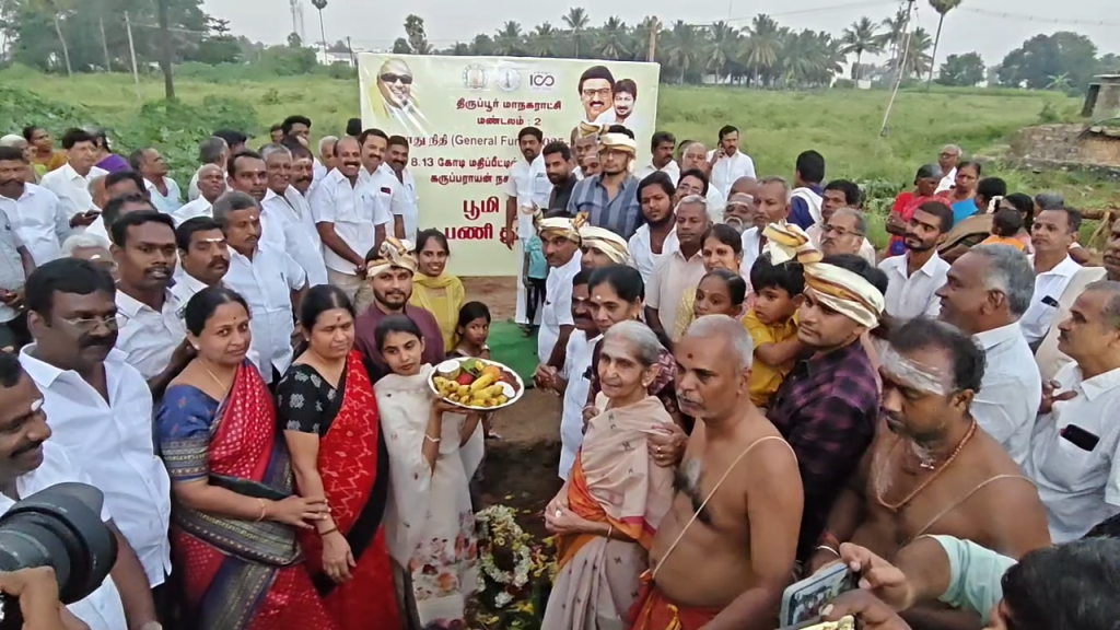 8-வது வார்டு திமுக கவுன்சிலர் வி.வி.ஜி.வேலம்மாள் காந்தி மேற்கொண்ட முயற்சியின் பலனாக அப்பகுதியை சேர்ந்த ஓய்வு பெற்ற ஆசிரியர் கிருஷ்ணசாமி வள்ளியம்மாள் குடும்பத்தினர் கழிவுநீரை வெளியேற்றும் வகையில் ரூ.10 கோடி மதிப்பிலான நிலத்தை மக்களுக்கு பயன்படும் வகையில் அரசுக்கு தானமாக வழங்கி உள்ளனர். இந்த நிலையில் அந்த குடும்பத்தினருக்கு பாராட்டு விழா மற்றும் பணிகளுக்கான பூமிபூஜை விழா நடைபெற்றது. நிகழ்ச்சிக்கு கவுன்சிலர் வேலம்மாள் காந்தி தலைமை தாங்கினார். இந்த நிகழ்ச்சியில், மாநகராட்சி மேயர் தினேஷ்குமார், மாநகராட்சி துணை மேயர் எம்.கே.எம்.பாலசுப்பிரமணியம் உள்ளிட்ட பலர் கலந்து கொண்டனர். முன்னதாக கவுன்சிலர் வேலம்மாள் காந்தி ஏற்பாட்டில் நிலம் வழங்கிய குடும்பத்தினர் மும்மூர்த்தி நகர் பஸ் நிறுத்தத்தில் இருந்து பூரண கும்ப மரியாதையுடன், மேள, தாளம் மற்றும் வான வேடிக்கை முழங்க பொதுமக்களுடன் ஊர்வலமாக அழைத்து செல்லப்பட்டு, கவுரவிக்கப்பட்டனர். நிகழ்ச்சியையொட்டி வள்ளி கும்மியாட்டம் மாணவர்களின் கலை நிகழ்ச்சிகள் நடைபெற்றது.
