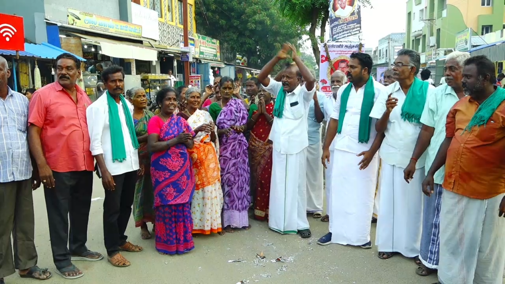 காவிரி விவசாயிகள் பாதுகாப்பு சங்கத் தலைவர் மு. சேரன், விவசாயிகள் மற்றும் பெண் விவசாயிகள் பலர் பங்கேற்றனர்.