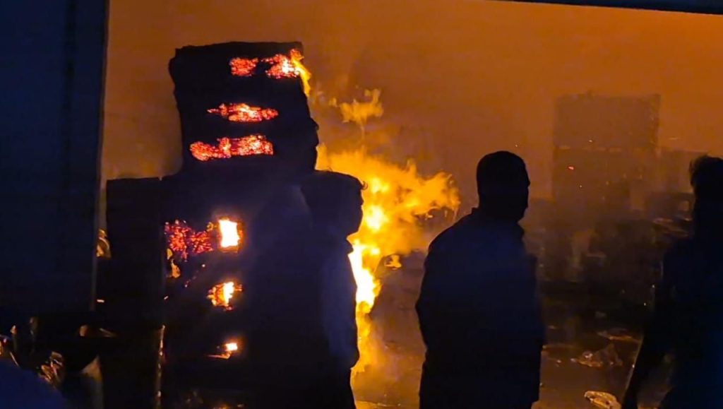 இந்த நிலையில் நேற்று இரவு 9:00 மணிக்கு பணி முடிந்து வேலையாட்கள் அனைவரும் தங்கள் இருப்பிடத்திற்கு சென்ற நிலையில் சுமார் நள்ளிரவு 12 மணி அளவில் திடீரென ஜே பி எண்டர்பிரைசஸ் பேக்கிங் பிரிவு பகுதியில் திடீரென தீப்பிடித்து முழுவதுமாக தீ பற்றி மளமளவென எரிய ஆரம்பித்தது.