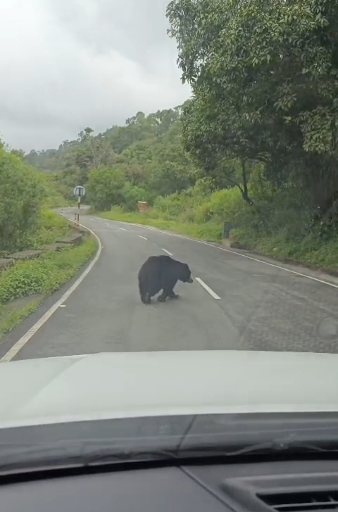 வால்பாறையில் திடீரென தோன்றிய கருப்பு உருவம் வனப்பகுதிக்கு சென்று மறைந்தது , சாலையில் செல்லும் சுற்றுலா பயணிகள் பாதுகாப்பாக செல்ல வனத்துறை அறிவுறுத்தல் வழங்கியுள்ளது .
