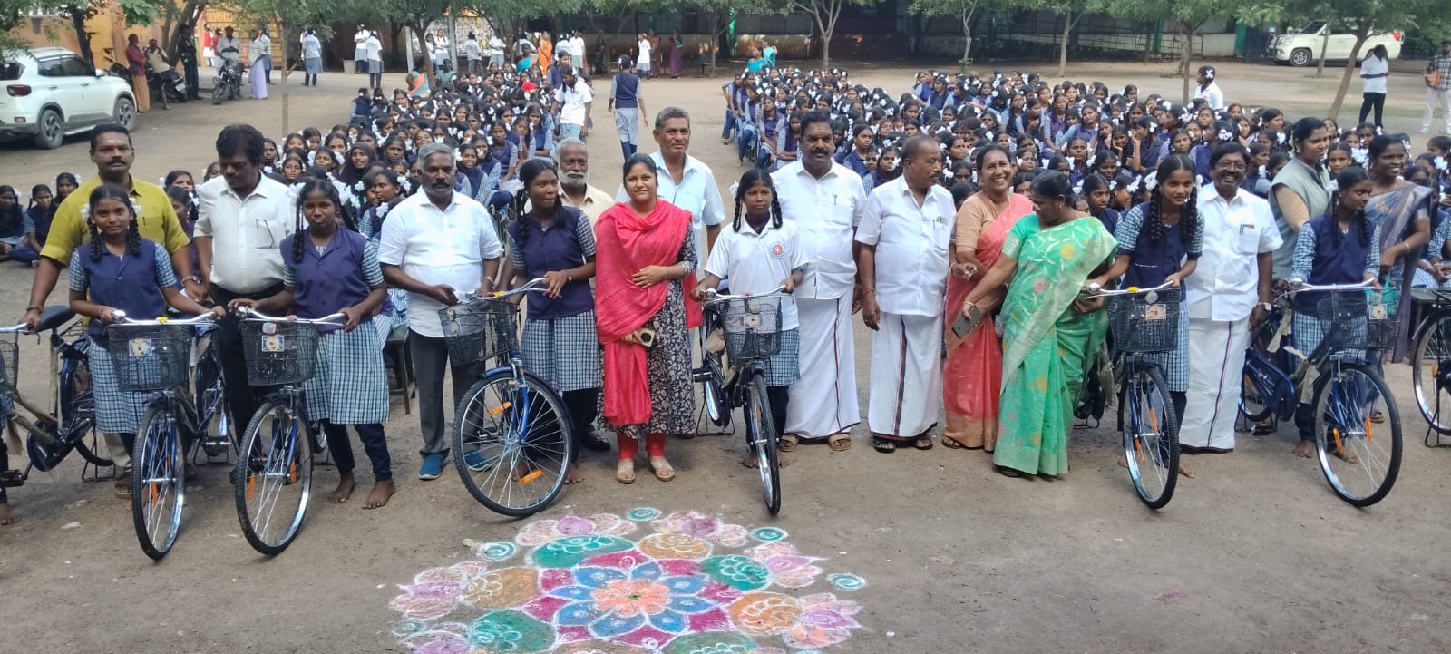 கள்ளக்குறிச்சி மாவட்டம் உளுந்தூர்பேட்டை அரசு பெண்கள் மேல்நிலைப் பள்ளியில் விலையில்லா 416 மிதிவண்டியை மாணவிகளுக்கு தொகுதி எம்எல்ஏ மணிக்கண்ணன் வழங்கினார் நிகழ்ச்சியில் பெற்றோர் ஆசிரியர் கழக தலைவர் சிவராஜ் தலைமை வகித்தார். பள்ளி தலைமை ஆசிரியை சரஸ்வதி வரவேற்புரை ஆற்றினார். நிகழ்ச்சியில் நகரமன்ற தலைவர் திருநாவுக்கரசு, பெற்றோர் ஆசிரியர் கழக பொருளாளர் ஜலாபுதீன், கவுன்சிலர்கள் கலா, செல்வகுமாரி ரமேஷ்பாபு,விஜயலட்சுமி பூபதி, ஆசிரியர்கள் கனக சபை, ரக் மனிஷாபேகம், ஓய்வு பெற்ற தலைமை ஆசிரியர் தெய்வீகன், உள்ளிட்ட ஆசிரியர்கள் மாணவிகள் நிகழ்ச்சியில் கலந்து கொண்டனர். நிகழ்ச்சி முடிவில் முதுகலை ஆசிரியர் சுப்பிரமணியன் நன்றி கூறினார்.