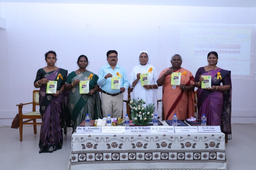 கல்லூரி செயலர் அருட்சகோதரி முனைவர் ஆர். சாந்த மேரி ஜோஷிட்டா மற்றும் தலைமை இல்ல அருட்சகோதரி முனைவர் . எம்.ரெஜினாள் ஆகியோர் வாழ்த்துரை வழங்கினர். திருவாரூர் மத்தியப் பல்கலைக்கழக பேராசிரியர் முனைவர் கு.மாவலி ராஜன் சிறப்புரை ஆற்றினார். பேராசிரியர்கள் ஆர்.சுமேஷ், ஜெ.வில்லியம், எஸ். சுதர்சன், இலங்கை ஜாப்னா பல்கலைக்கழகப் பேராசிரியர் எஸ். சாந்தினி உட்பட பலர் கலந்து கொண்டனர். இந்நிகழ்வில் 200 மாணவ மாணவிகள் கலந்து கொண்டனர்.பேராசிரியர் கு.ஜெனிபர் அறிக்கை வாசித்தார்.இந்த கருத்தரங்கத்திற்கான ஆய்வு கட்டுரையை சமர்ப்பித்தனர்.நிகழ்ச்சி முடிவில் முனைவர் ஜே.ஆர் அனோஜா நன்றி கூறினார்.