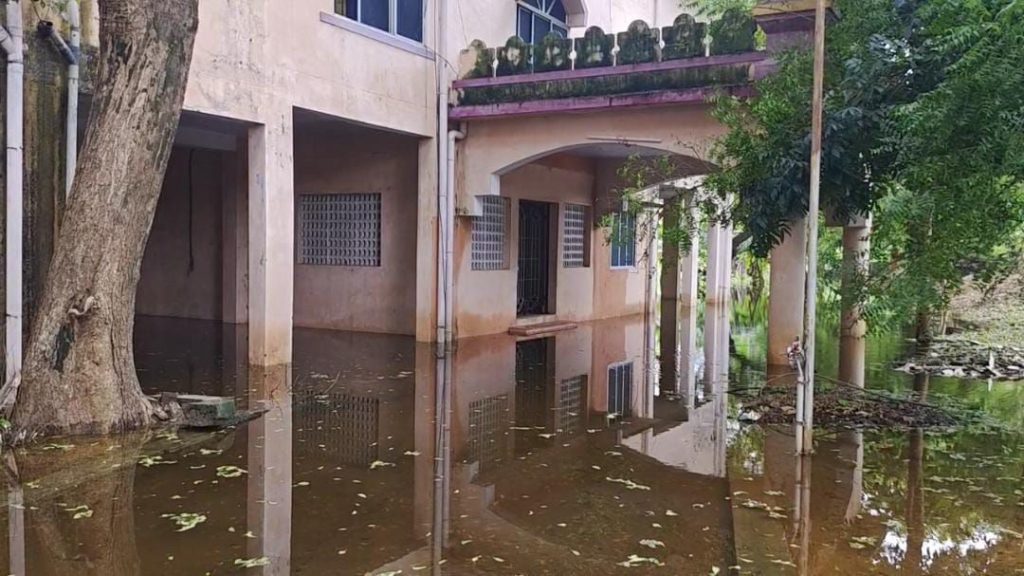 எனவே நீதிமன்ற கட்டிடத்திற்குள் உள்ள ஏரி தண்ணீரை அகற்றி நீதிமன்ற கட்டிடத்திற்குள் ஏரி தண்ணீர் வராமல் நடவடிக்கை எடுக்க வேண்டும் என வழக்கறிஞர்கள் கோரிக்கை வைத்துள்ளனர்.