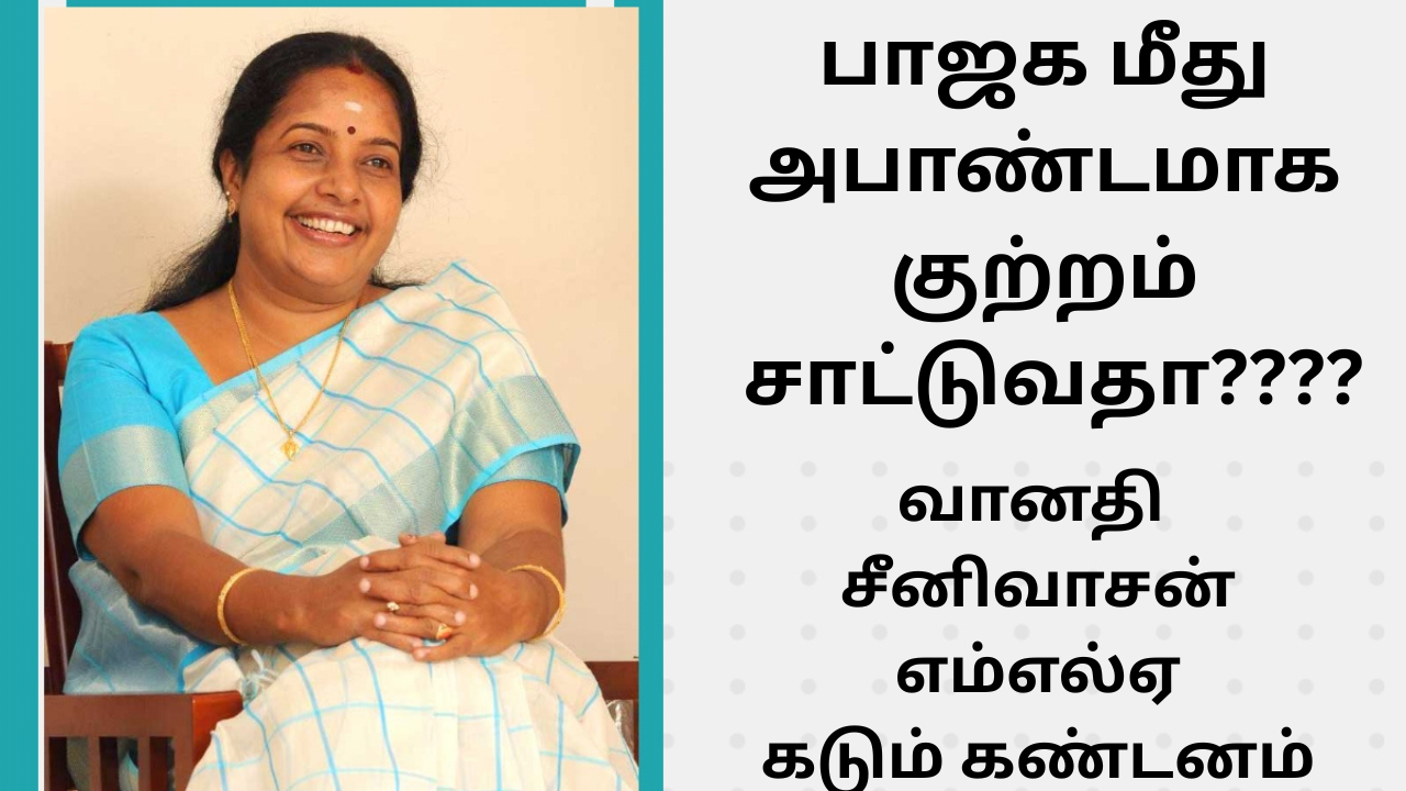 பாஜக மீது அபாண்டமான குற்றச்சாட்டு சாட்டுவதா?வானதி சீனிவாசன் கடும் கண்டனம் Posted by UArasu 0 Min Read UArasu October 26, 2025 Previous Article தவெகவை பாஜக முடக்கி வைத்துள்ளது என்பது அபாண்டமான குற்றச்சாட்டு என வானதி சீனிவாசன் பேட்டி Next Article கொம்பன் யானை நொய்யல் ஆற்றை கடந்து செல்லும் செல்போன் வீடியோ காட்சிகள் – சமூக வலைதளங்களில் வைரல் !!!