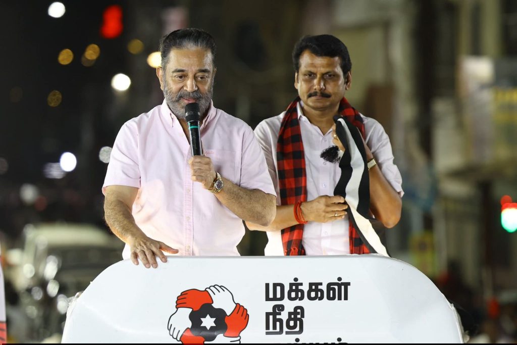 கோவை தெற்கு தொகுதி திமுக வேட்பாளர் செந்தில் பாலாஜியை ஆதரித்து தேர்நிலைத் திடல் பகுதியில் மக்கள் நீதி மய்யம் தலைவர் கமல்ஹாசன் பரப்புரை மேற்கொண்டார்.