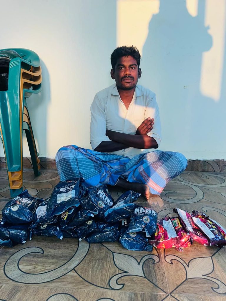 திருவெண்ணெய்நல்லூர் அருகே உள்ள பேரங்கியூர் கிராமத்தைச் சேர்ந்த காசிலிங்கம் மகன் அய்யனார் (31) இவர் தனது டூவீலரில் தடை செய்யப்பட்ட ஹான்ஸ் பாக்கெட் விற்பனை செய்வதற்காக எடுத்துச் சென்றபோது ஆலங்குப்பம் தரைப்பாலத்தில் வாகன சோதனை ஈடுபட்டிருந்த திருவெண்ணெய்நல்லூர் போலீஸ் சப் இன்ஸ்பெக்டர் அன்பழகன் வாகன சோதனையில் ஈடுபட்டிருந்தனர். அப்போது அந்த வழியாக வந்த இவரை பிடித்த விசாரிக்கும் போது ஹான்ஸ் பொருள் எடுத்து வருவது தெரிய வந்தது. உடனடியாக இவரை கைது செய்து வழக்கு பதிவு செய்து இவரிடம் இருந்து 300பாக்கெட்டூவீலரில் பறிமுதல் செய்தனர்.