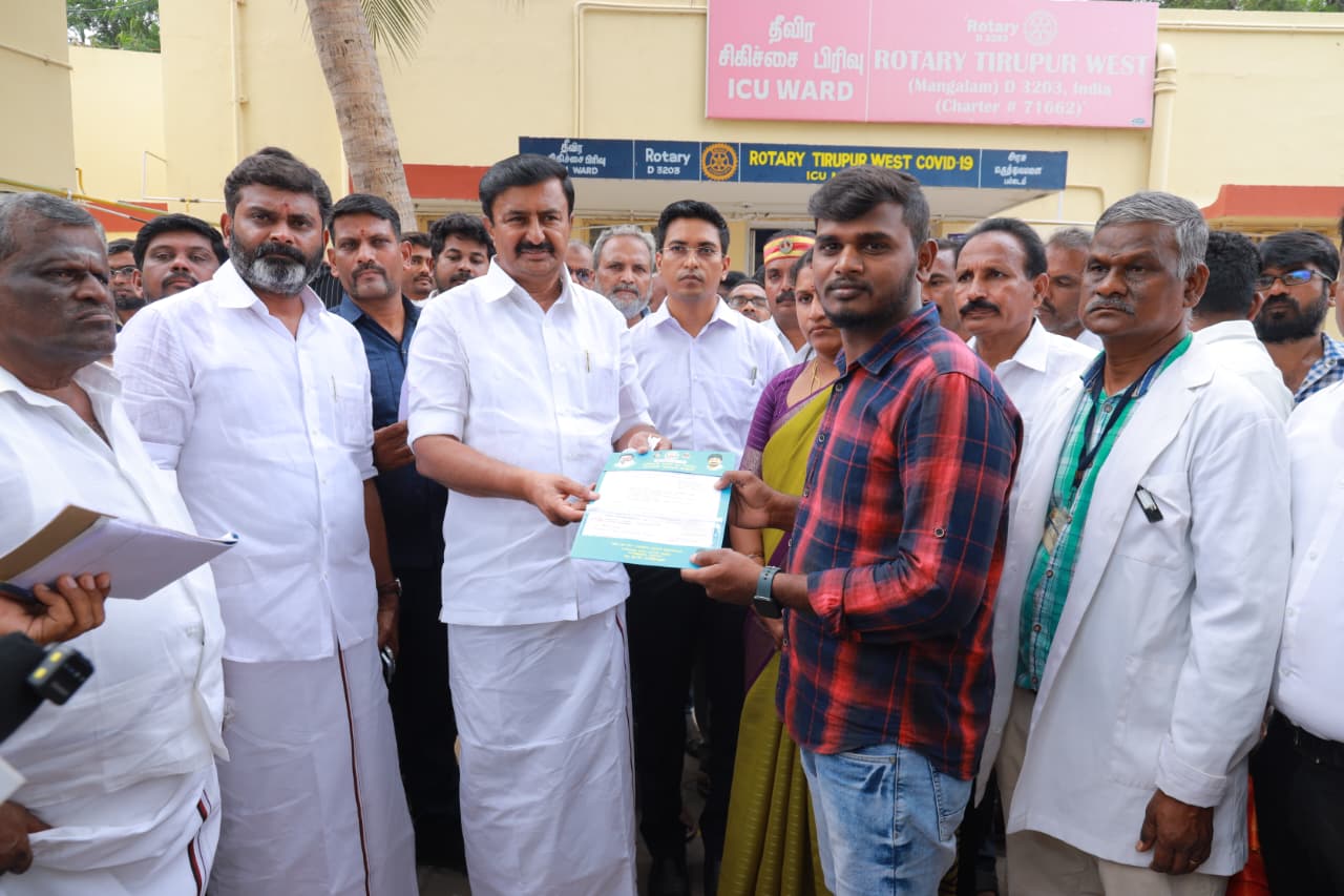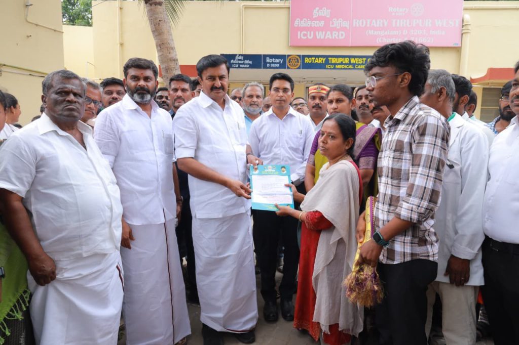 தமிழ் வளர்ச்சி மற்றும் செய்தித்துறை அமைச்சர் திரு.மு.பெ சாமிநாதன் பல்லடம் அரசு மருத்துவமனை வளாகத்தில் பத்திரிக்கையாளர் நல வாரியத்தின் கீழ் கோயமுத்தூர் புதிய நாளிதழ் செய்தியாளர் நாகராஜ் சிறுநீரக மாற்று அறுவை சிகிச்சைக்காக ரூ.2.50 இலட்சத்துக்கான காசோலை மற்றும் கோயமுத்தூர் மாவட்ட ராஜ் தொலைக்காட்சி செய்தியாளர் ரமேஷ் முதுகெலும்பு அறுவை சிகிச்சைக்காக ரூ.50,000/- க்கான காசோலை
