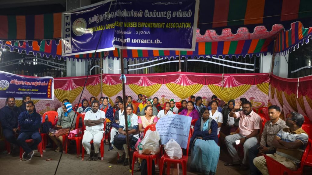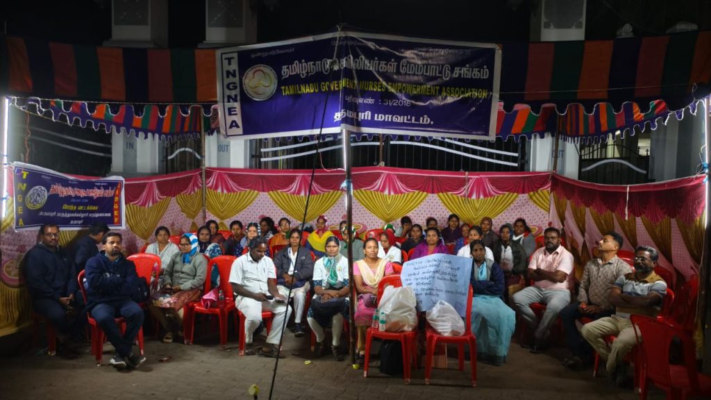 இது தமிழ்நாடு முழுவதும் தொடரும் செவிலியர் சங்க போராட்ட ஒரு பகுதியாகும்.