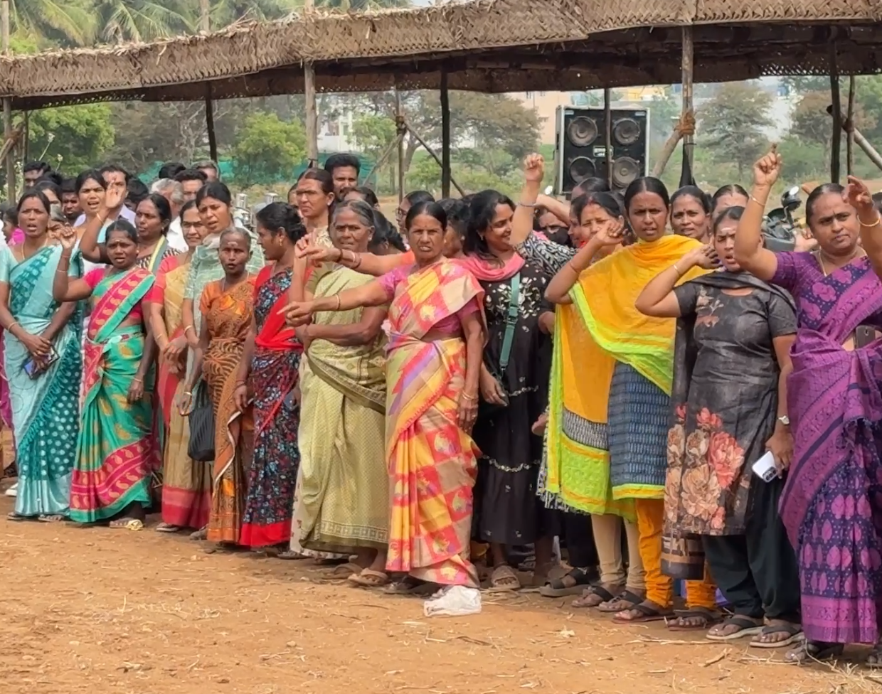 தங்கள் நிலங்களை பயன்படுத்த முடியாத சூழல் உள்ளதாகவும் தங்கள் பல ஆண்டுகளாக பயன்படுத்தி வந்த நிலத்தின் உரிமையை தங்களிடம் இருந்து பறிக்கும் செயலாக இது இருப்பதாக கூறி அல்லாளபுரம் பகுதியில் 500க்கும் மேற்பட்ட பெண்கள் உட்பட 1000க்கும் மேற்பட்டோர் கவன ஈர்ப்பு ஆர்ப்பாட்டத்தில் ஈடுபட்டனர். மேலும் ஆர்ப்பாட்டத்தில் ஈடுபட்டவர்கள் இனம் நல பிரச்சனையில் புதிய சட்டம் கொண்டு வந்து தங்களுக்கு தீர்வு கொண்டு வர வேண்டும் எனவும் நடவடிக்கை எடுக்கவில்லை எனில் எங்கள் வாக்கு உங்களுக்கு இல்லை என கோசமிட்டனர்.