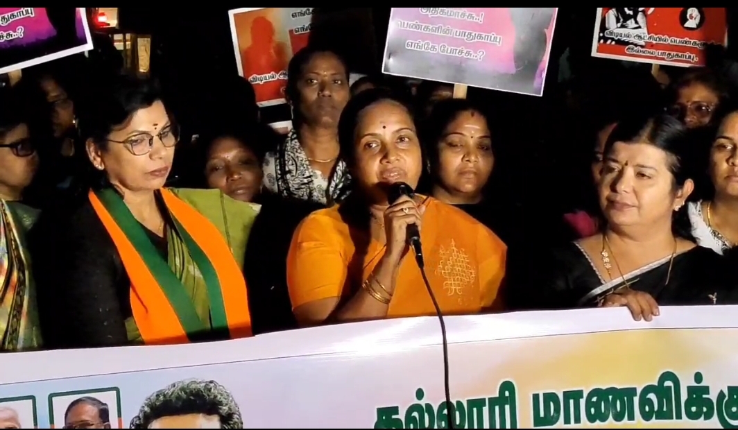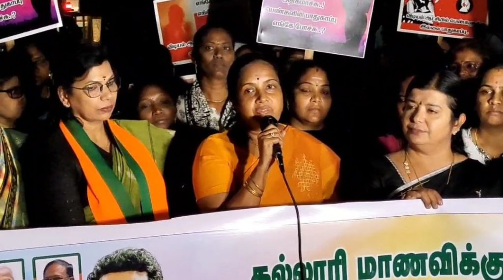கோவை கல்லூரி மாணவி பாலியல் பலாத்காரம் சம்பவத்தை கண்டித்து கோவையில் பாஜக எம்எல்ஏ  வானதி சீனிவாசன் தலைமையில் ஆர்ப்பாட்டம்