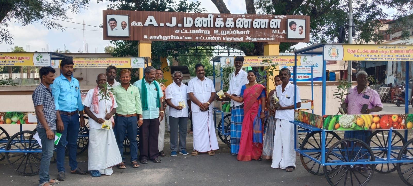 கள்ளக்குறிச்சி மாவட்டம் உளுந்தூர்பேட்டையில் தேசிய தோட்டக்கலை இயக்கம் திட்டத்தின் மூலம் விவசாயிகளுக்கு நடமாடும் காய்கறி விற்பனை வண்டியை தொகுதி எம்எல்ஏ மணிக்கண்ணன் வழங்கினார். தோட்டக்கலை சார்பாக விவசாயிகளுக்கு காய்கறி விதைகள், மரக்கன்றுகள், வழங்கப்பட்டது. நிகழ்ச்சியில் தோட்டக்கலை உதவி இயக்குனர் குமரேசன், உதவி தோட்டக்கலை அலுவலர் அறிவழகன், கோவிந்தன்,பிரியா, உள்ளிட்ட பயனாளிகளும் கலந்து கொண்டனர் அப்போது மாவட்ட கவுன்சிலர் அமுதா, விடுதலை சிறுத்தைகள் கட்சி மாவட்ட செயலாளர் அறிவுக்கரசு, நகராட்சி கவுன்சிலர் செல்வகுமாரி ரமேஷ் பாபு உள்ளிட்ட அனைவரும் நிகழ்ச்சியில் கலந்து கொண்டனர்.
