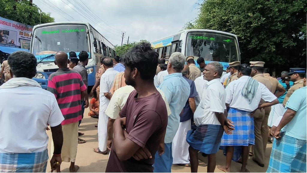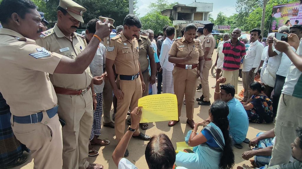 புகாரின் பேரில் நேற்று முன்தின இரவு போலீசார் அங்கு சென்று விசாரணை நடத்தியும், அதிகாலை வரை அப்பகுதியில் பாதுகாப்பில் இருந்து வந்ததா கவும் கூறப்படுகிறது.