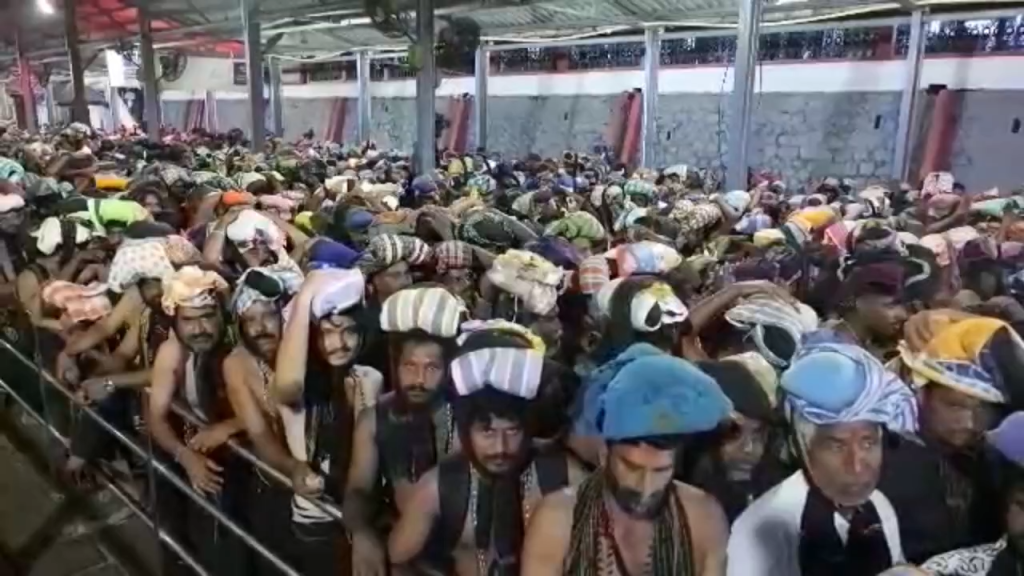 பக்தர்கள் திரளாக குவிந்து விண்ணை பிளக்கும் சரண கோஷம் எழுப்பி சாமி தரிசனம்.