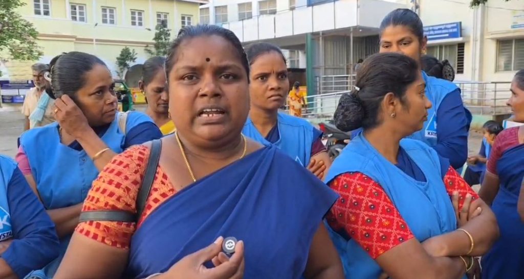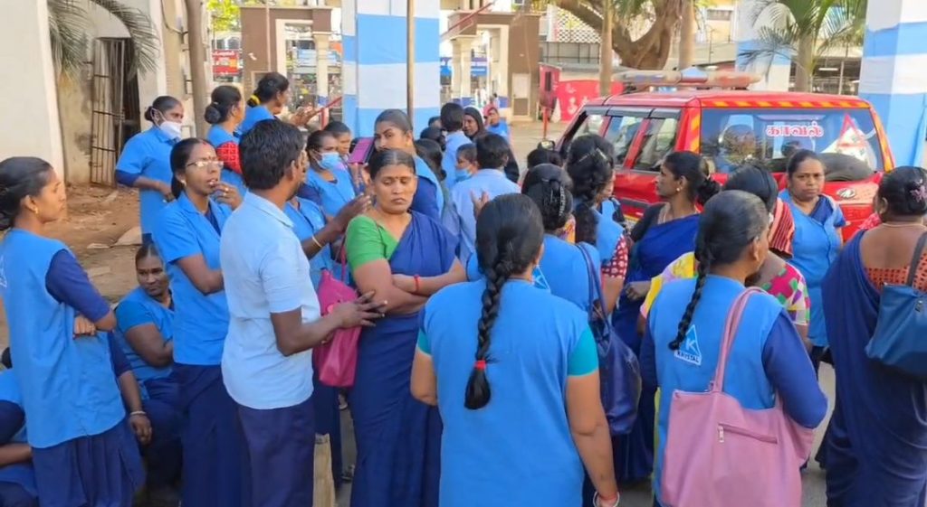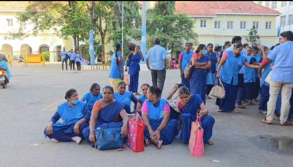 கோவை அரசு மருத்துவமனை : இருப்பிட மருத்துவர் பணி சுமைகளை அதிகரித்து, கொடுமைப்படுத்தும் அவர் மீது நடவடிக்கை எடுக்க வேண்டும் – தூய்மை பணியாளர்கள் பணிகளை புறக்கணித்து போராட்டம்.