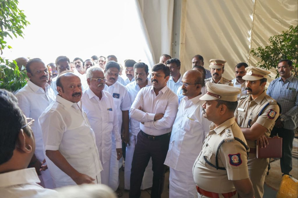 இதனை முன்னிட்டு, வேளாண்மை மற்றும் உழவர் நலத்துறை அமைச்சர் எம்.ஆர்.கே. பன்னீர்செல்வம் திருமண நிகழ்வு நடைபெறும் இடத்தை நேரில் பார்வையிட்டு, ஏற்பாடுகளை பரிசீலித்தார்.