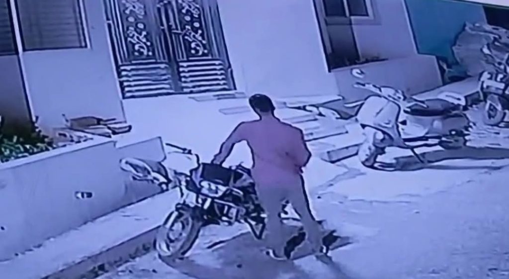 பின்னர் அருகில் உள்ள வீட்டில் பொருத்தப்பட்டிருந்த சிசிடிவி பதிவு காட்சிகளை ஆய்வு செய்தபோது மர்ம நபர் ஒருவர் இரு சக்கர வாகனத்தை திருடிச் செல்லும் காட்சி பதிவாகி இருந்தது.