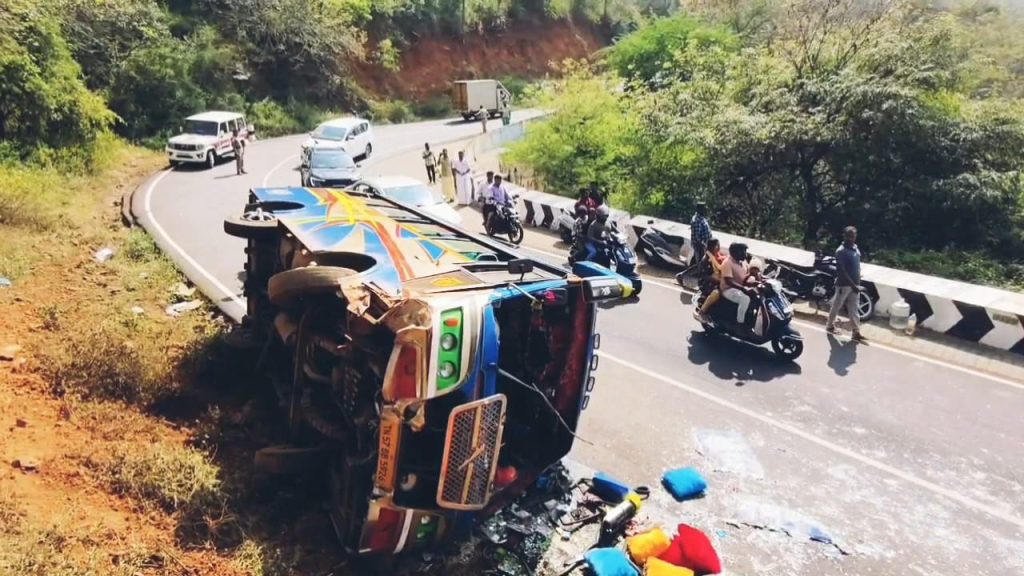 அரூர் அருகே உள்ள மொண்டுகுழி கிராமத்தில் இருந்து ஒகேனக்கல் நோக்கி சென்ற அந்த வேன், வனப்பகுதி சாலையின் கடுமையான வளைவில் டிரைவரின் கட்டுப்பாட்டை இழந்து கவிழ்ந்தது.